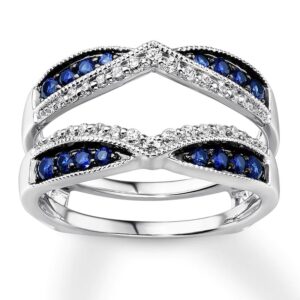 Natural Sapphire Enhancer Ring 1/5 ct tw Diamonds 14K White Gold