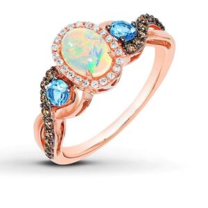 Opal Ring 1/4 ct tw Diamonds 14K Strawberry Gold