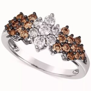 1/10 CT. T.W. Champagne and White Diamond Cheetah Ring in 10K Gold and Black Rhodium:1/10 CT. T.W. Champagne and White Diamond Cheetah Ring in 10K Gold and Black Rhodium